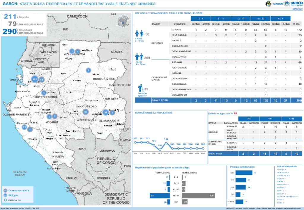 GABON : STATISTIQUES DES REFUGIES ET DEMANDEURS D’ASILE EN ZONES URBAINES - MAI 2023