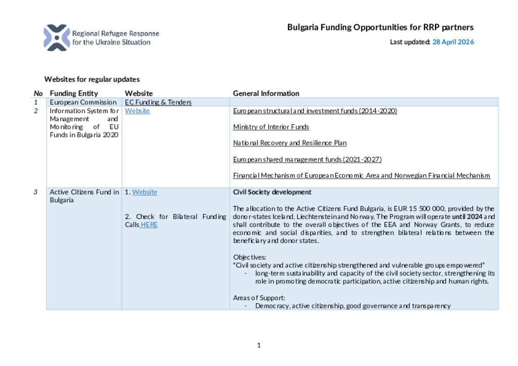 Bulgaria - Funding Opportunities for RRP partners - April 2026 update