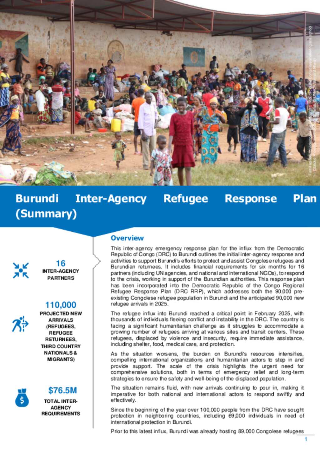 Burundi Inter-Agency Refugee Response Plan (Summary) - DRC situation (March-September 2025)