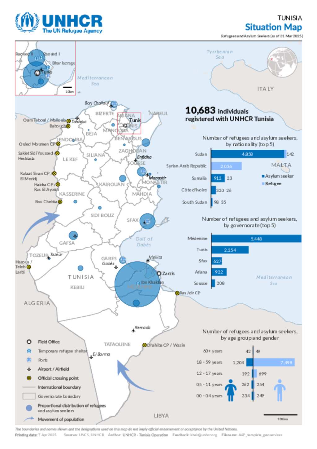 UNHCR Tunisia Situation Map (31 March 2025)
