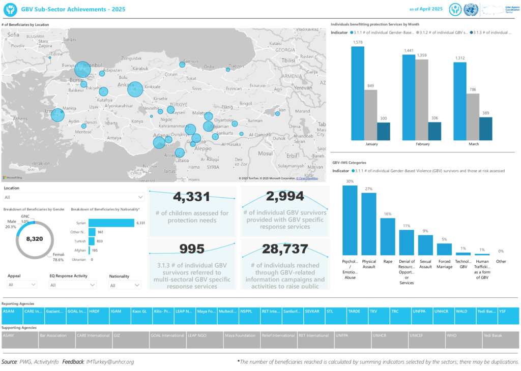 Türkiye: GBV Sub-Sector Dashboard - National - March 2025