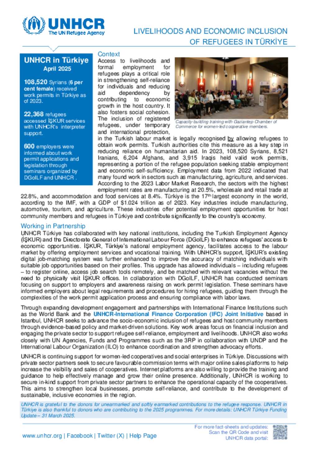 Factsheet _ Livelihoods and Economic Inclusion_ UNHCR in Turkiye _ April 2025