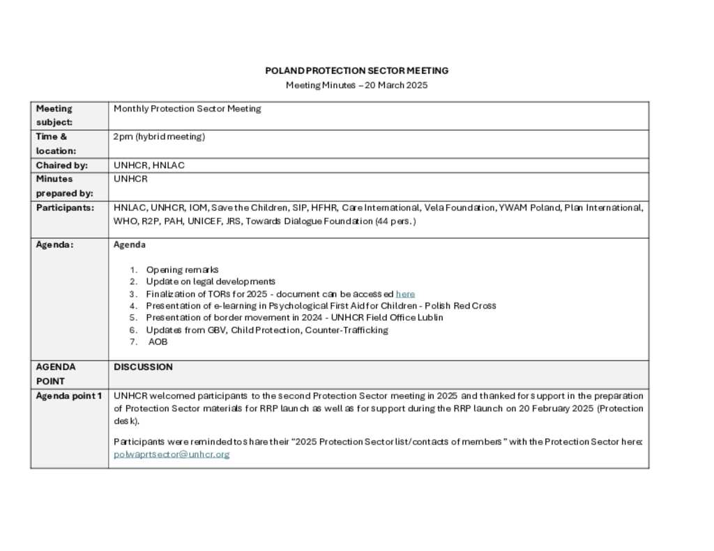 Poland: Protection Sector - meeting minutes (20 March 2025)