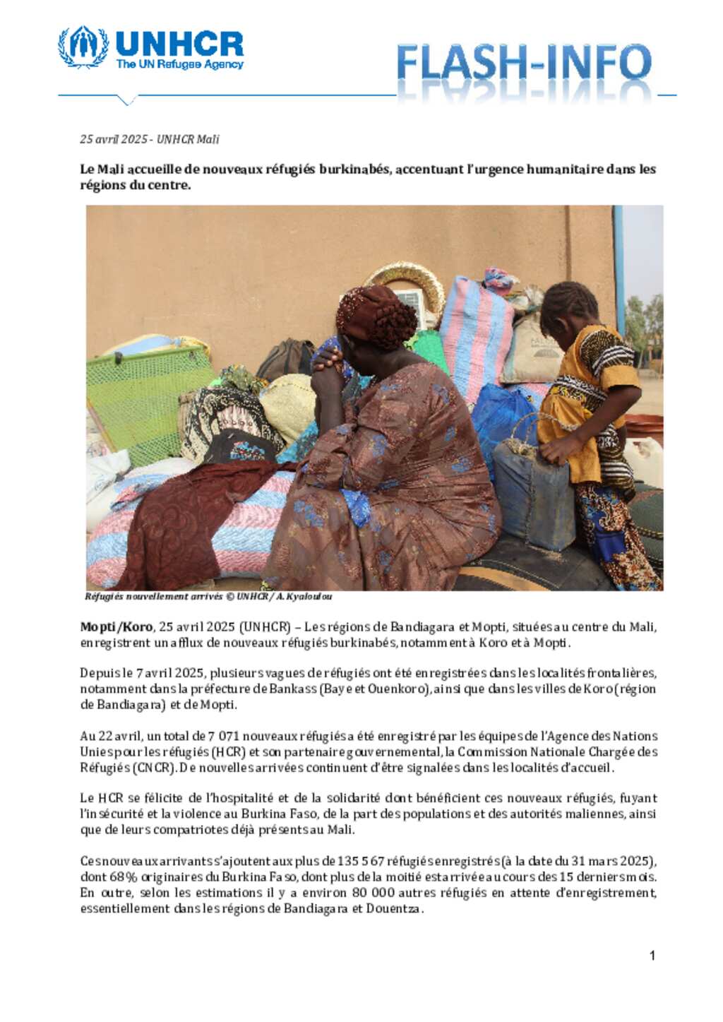 Le Mali accueille de nouveaux réfugiés burkinabés, accentuant l’urgence humanitaire dans les régions du centre.
