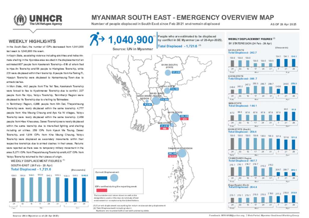 South East Myanmar UNHCR Displacement Overview 28 Apr 2025