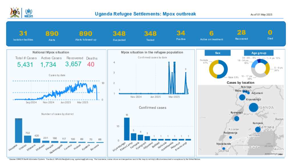Disease outbreak dashboard in the refugee settlements - Uganda as of 01 May 2025