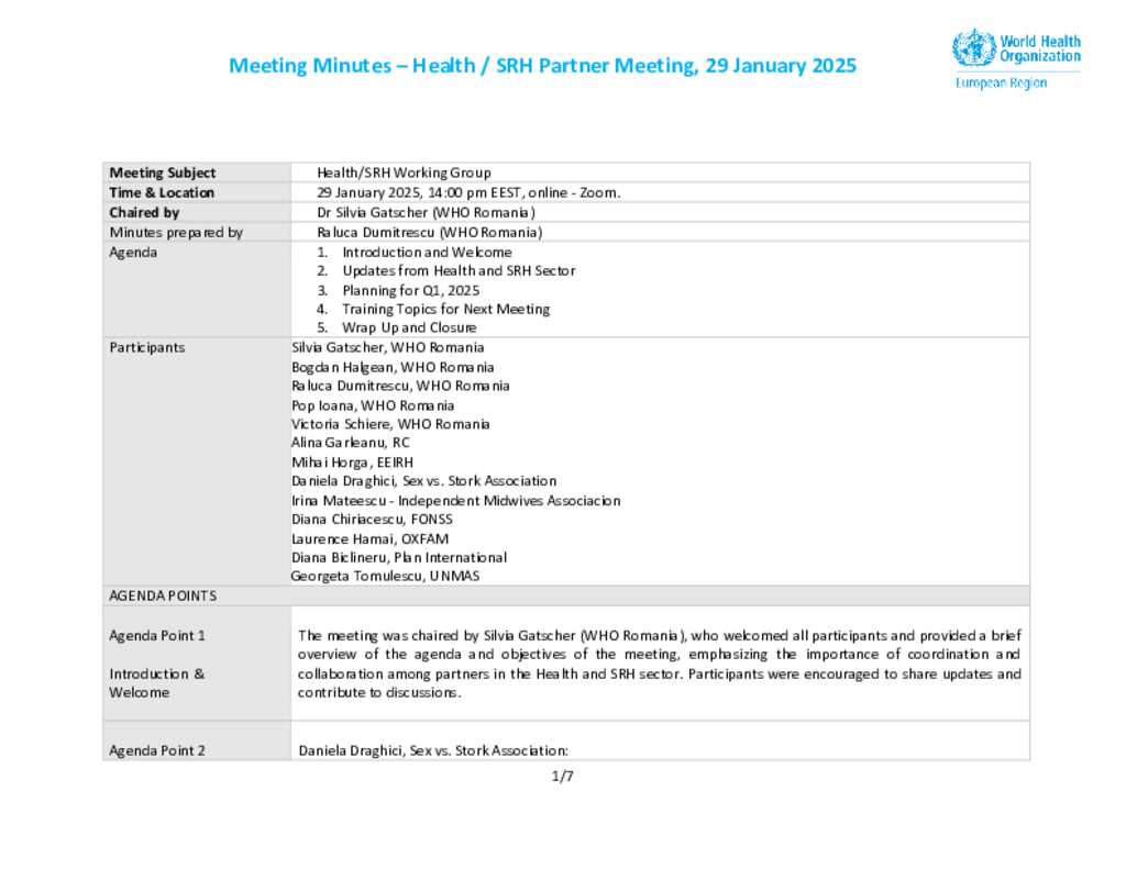 Health and SRH Working Group minutes - 29 January 2025