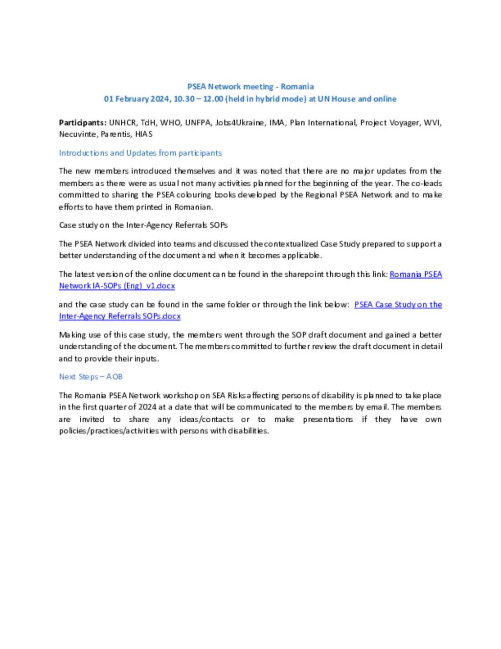 PSEA Network minutes - 2 February 2024