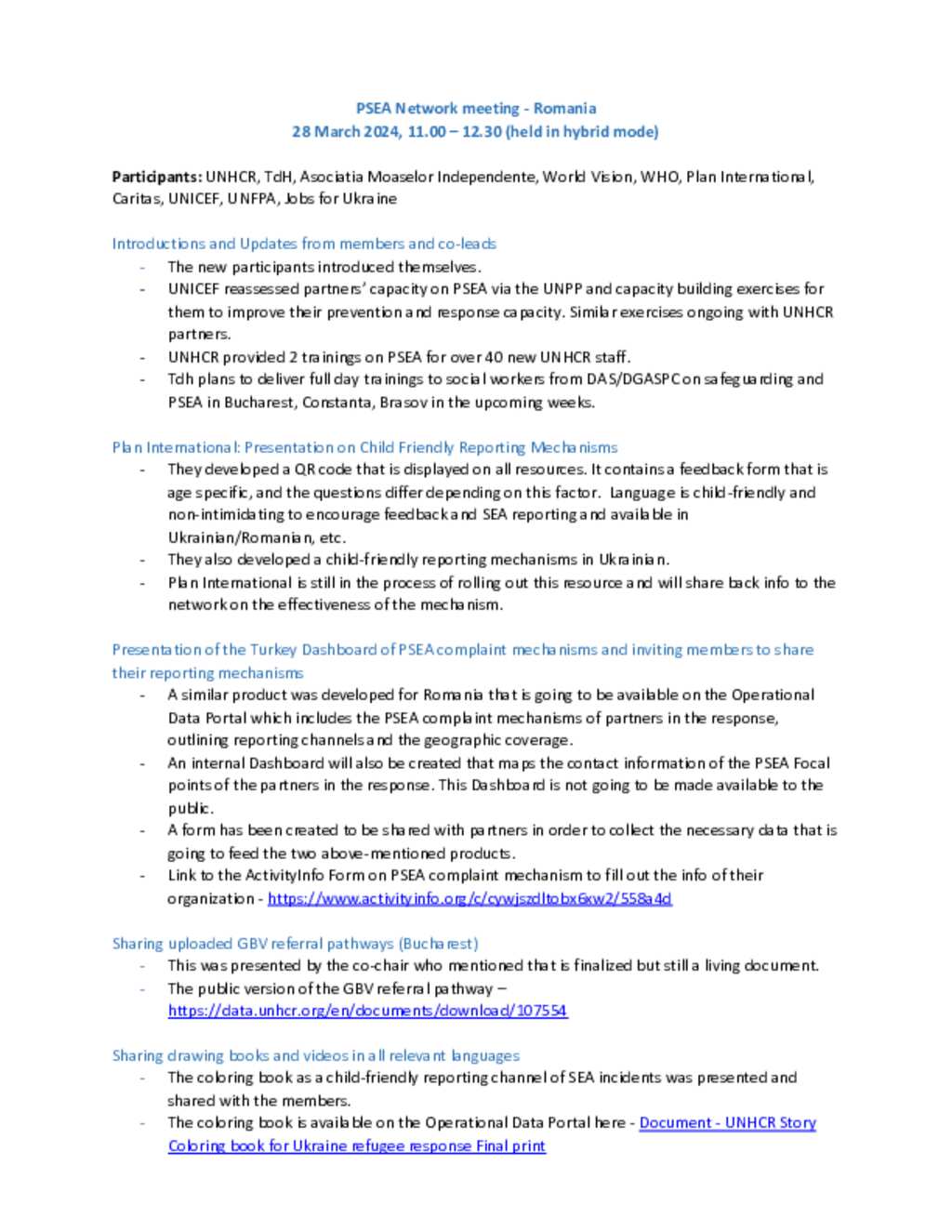 PSEA Network minutes - 28 March 2024