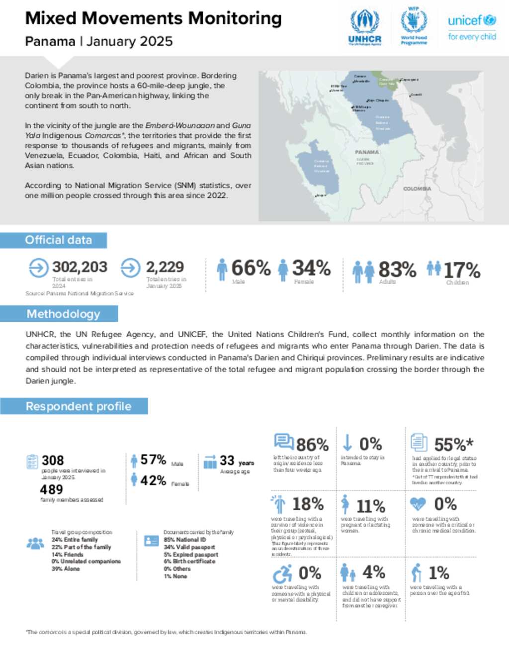 Main findings of the monthly mixed movements monitoring conducted by UNHCR and UNICEF Panama in Darien province, Panama