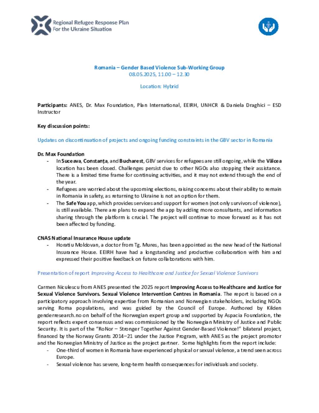 Gender-Based Violence sub-Working Group minutes - 8 May 2025