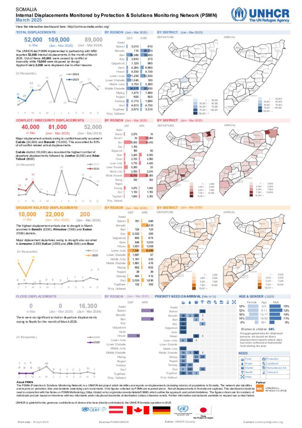 UNHCR Somalia PSMN Internal Displacements Dashboard - March 2025