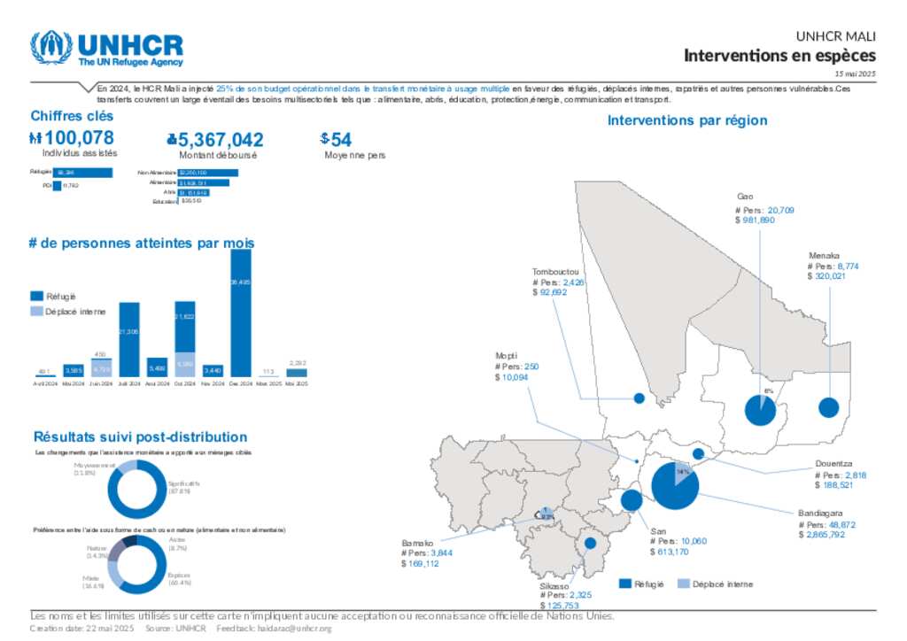 UNHCR Mali Cash transfert au 15 mai 2025