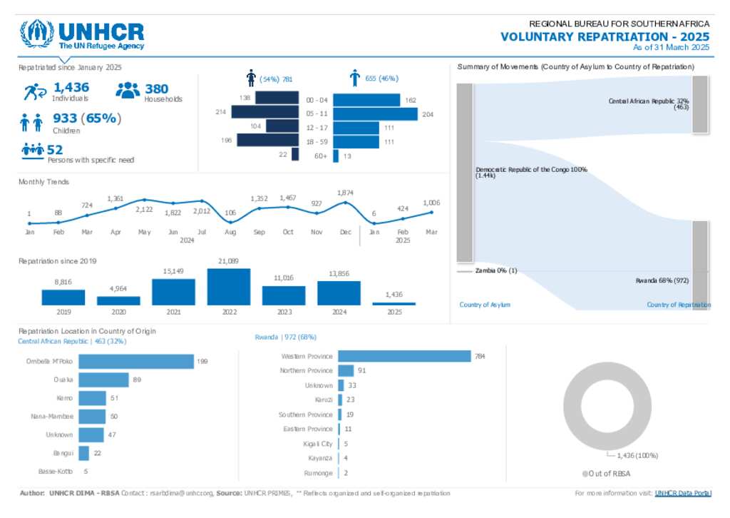 Voluntary Repatriation Dashboard - Regional Bureau of Southern Africa - March 2025