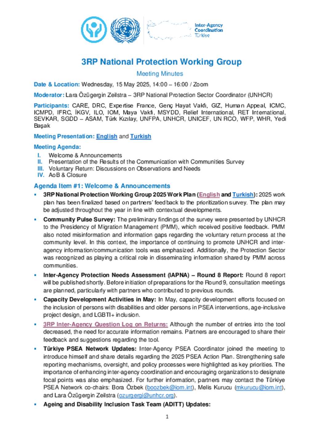 Türkiye: 3RP National Protection Working Group - Meeting Minutes (May 2025)