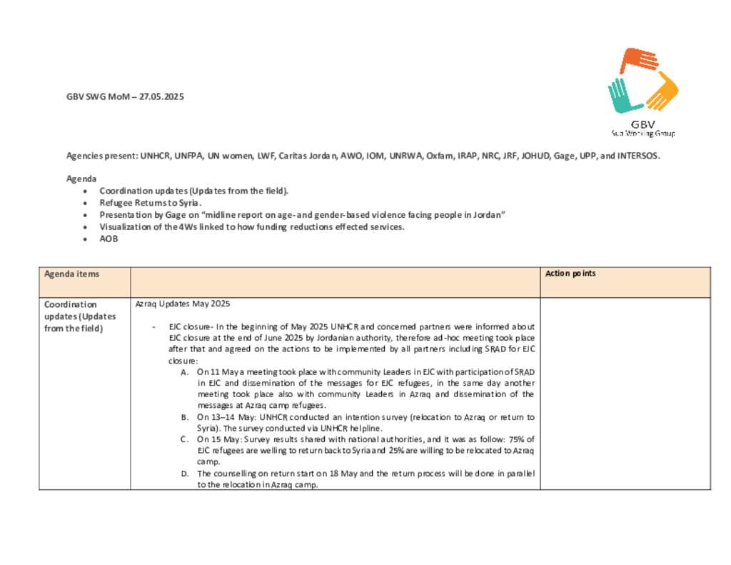 GBV SWG Jordan MoM May 2025