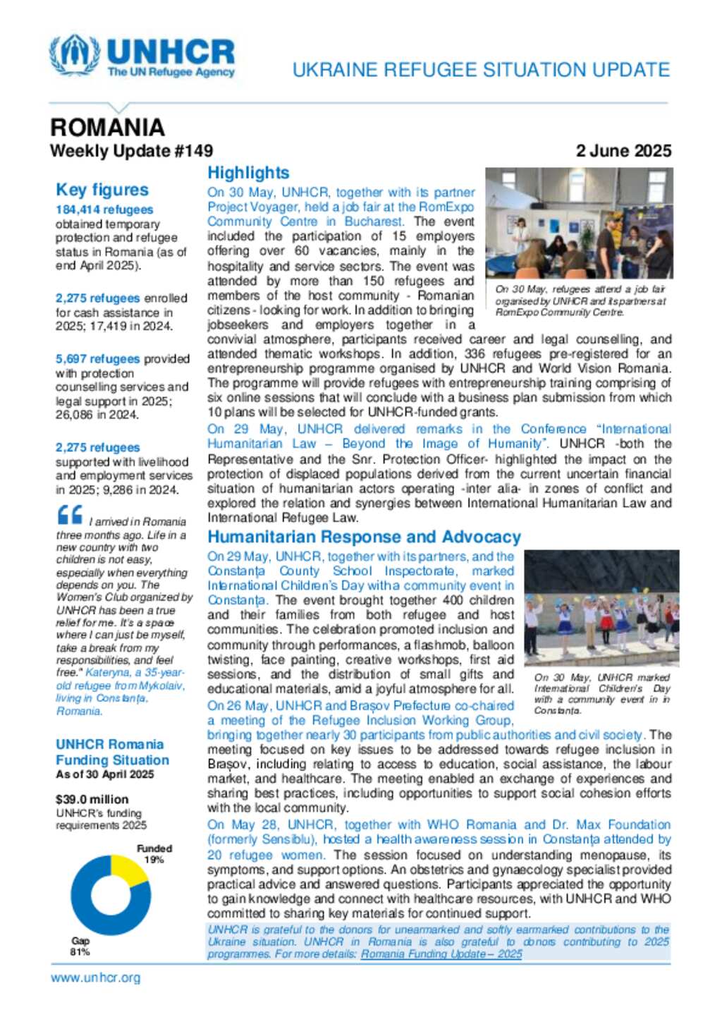 UNHCR Romania Ukraine Refugee Situation Update - 2 June 2025