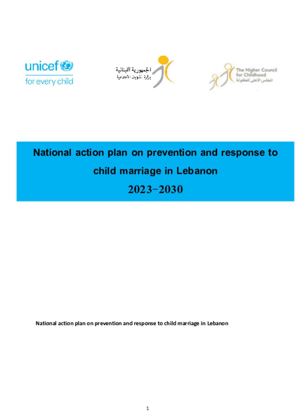 National Plan on Preventing and Responding to Child Marriage Action Plan (2023-2030)