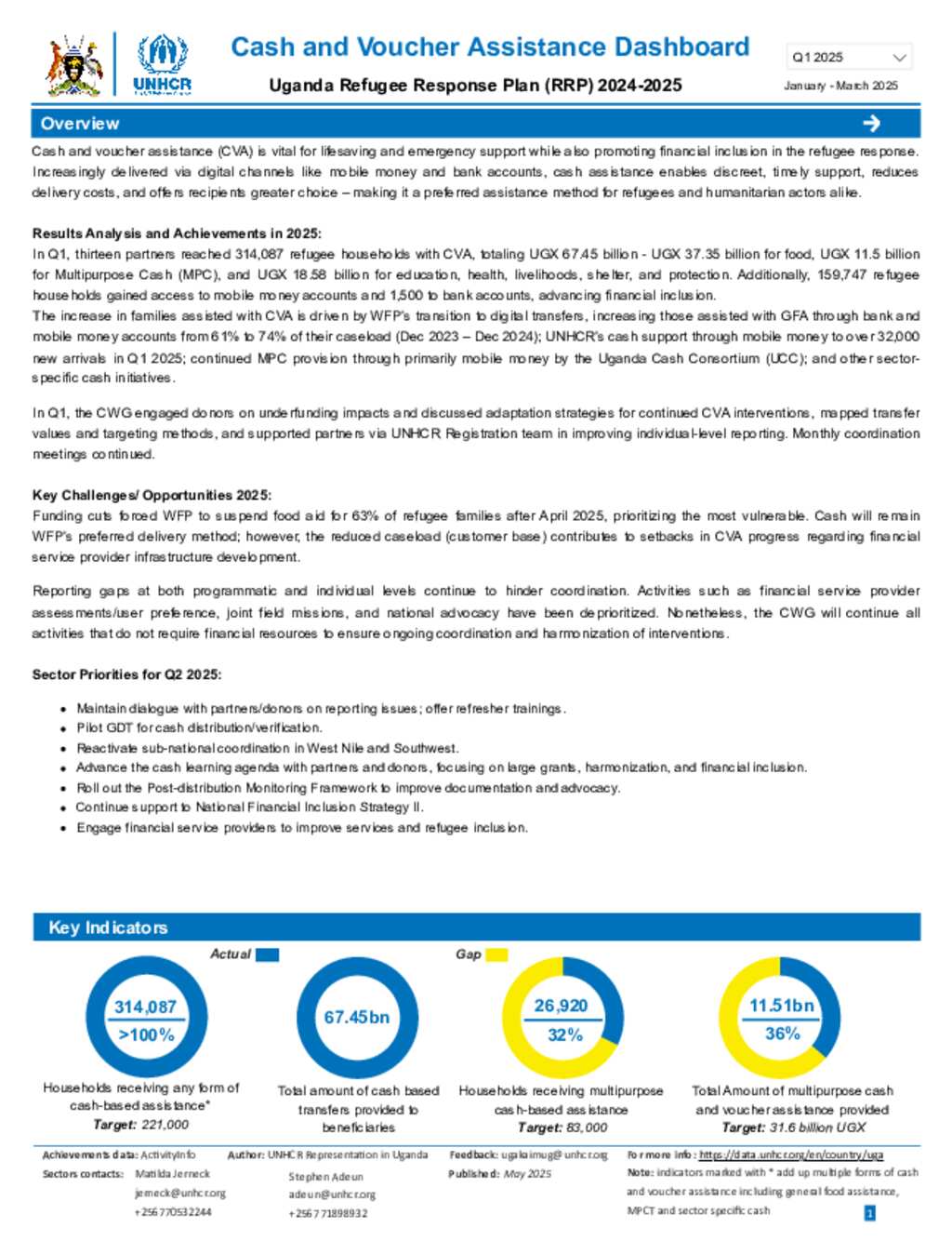 Uganda Refugee Response: Cash Voucher Assistance (CVA) dashboard Quarter 1 2025