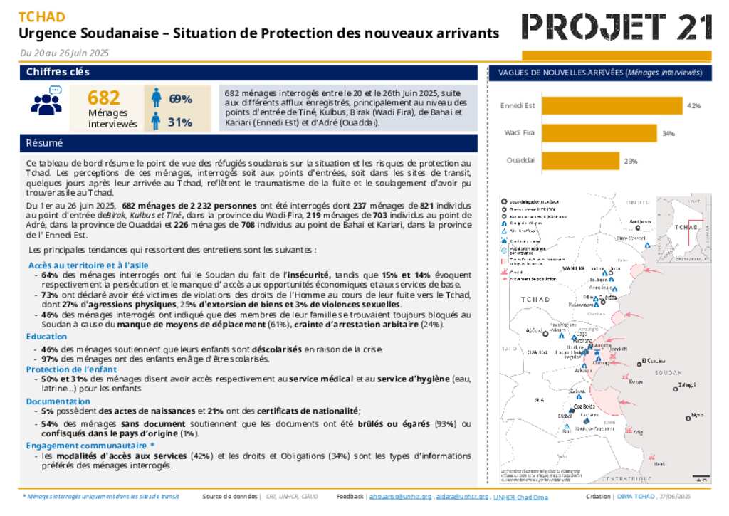 P21 - TCHAD| Dashboard Résultats Préliminaires Monitoring Urgence soudanaise (20 au 26 juin 2025)(FR)