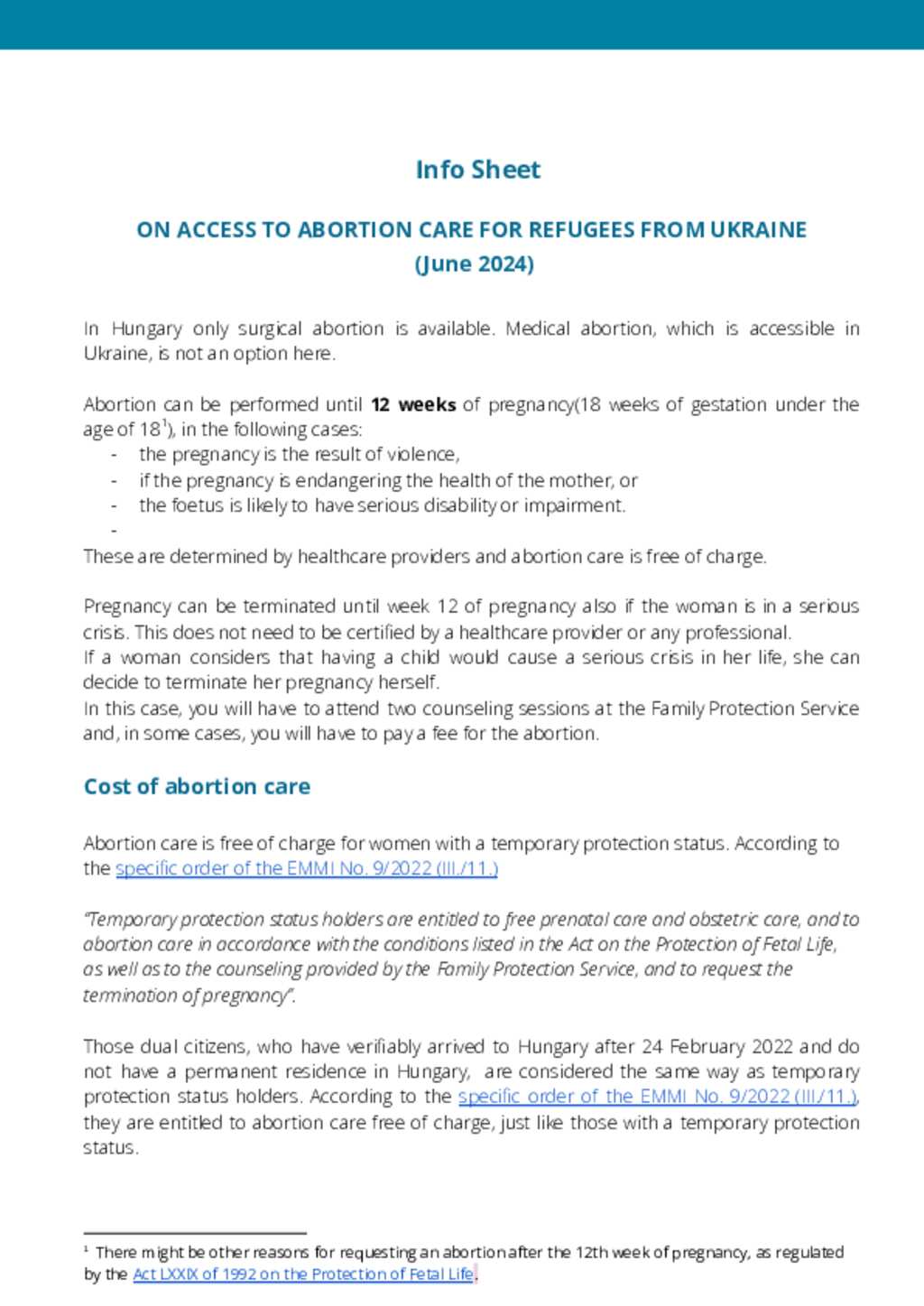 Hungary: Infosheet on Access to Abortion Care for Refugees from Ukraine (June 2024)