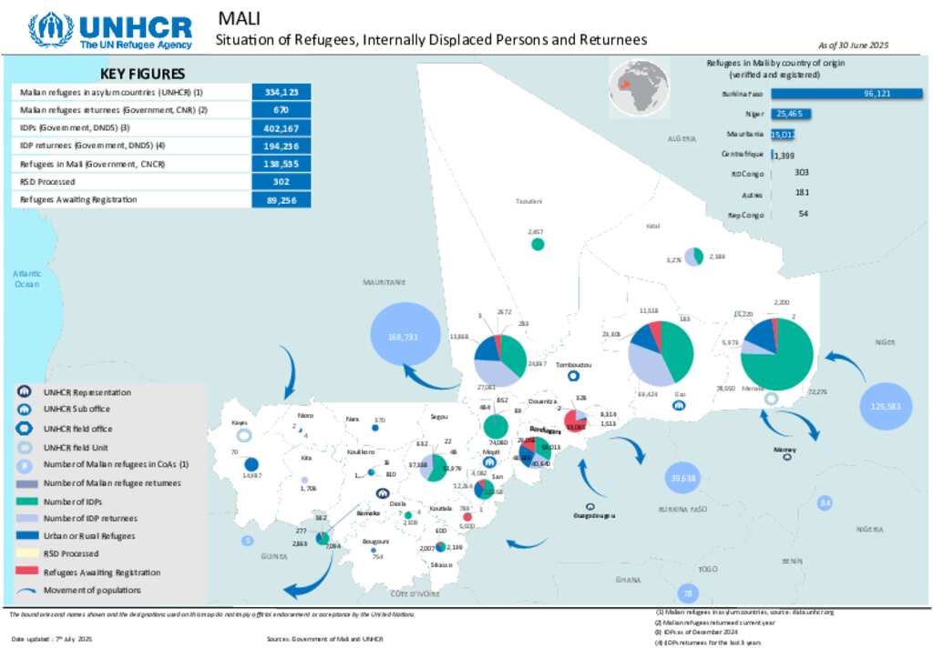 Mali situation of refugees internally displaced persons and returnees 30 juin 2025 english