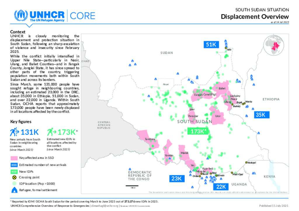This is a weekly update on the newly displaced South Sudanese inside and outside the country