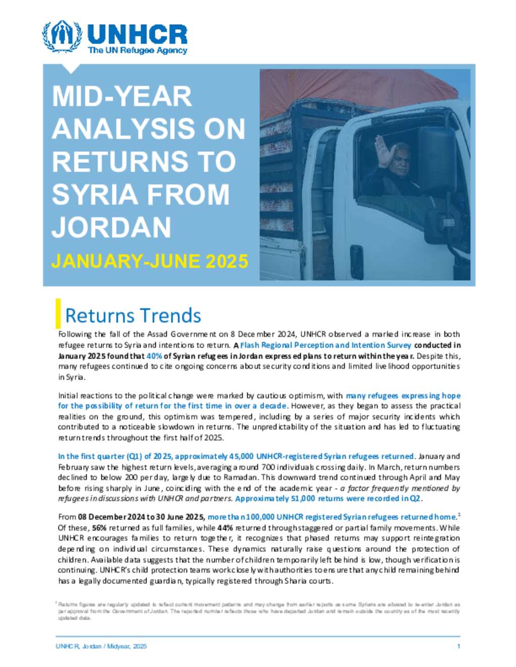 Jordan: MID-YEAR Analysis on Returns to Syria from Jordan (January-June 2025)