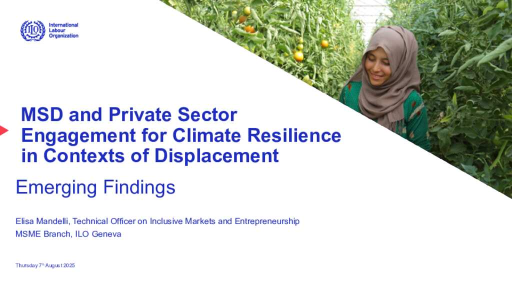 Presentation - ILO – MSD and Private Sector Engagement for Climate Resilience in Fragile Contexts: Emerging Findings - August 2025