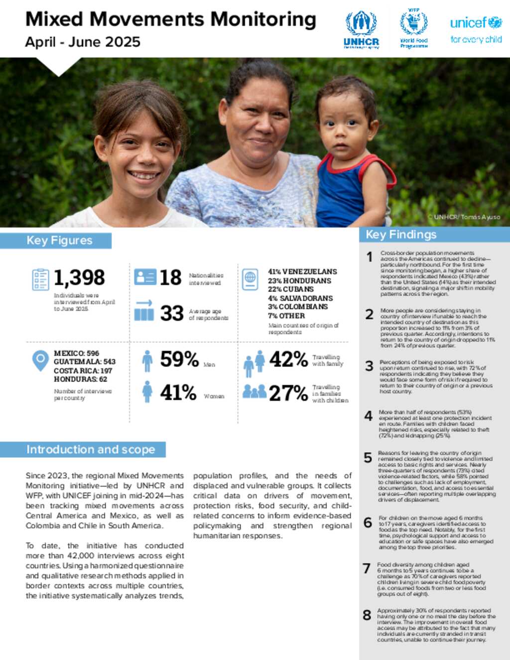 The Mixed Movements Monitoring is an interagency initiative by UNHCR, WFP and UNICEF aimed at gathering evidence on the dynamics of mixed movements in countries within the Americas region.