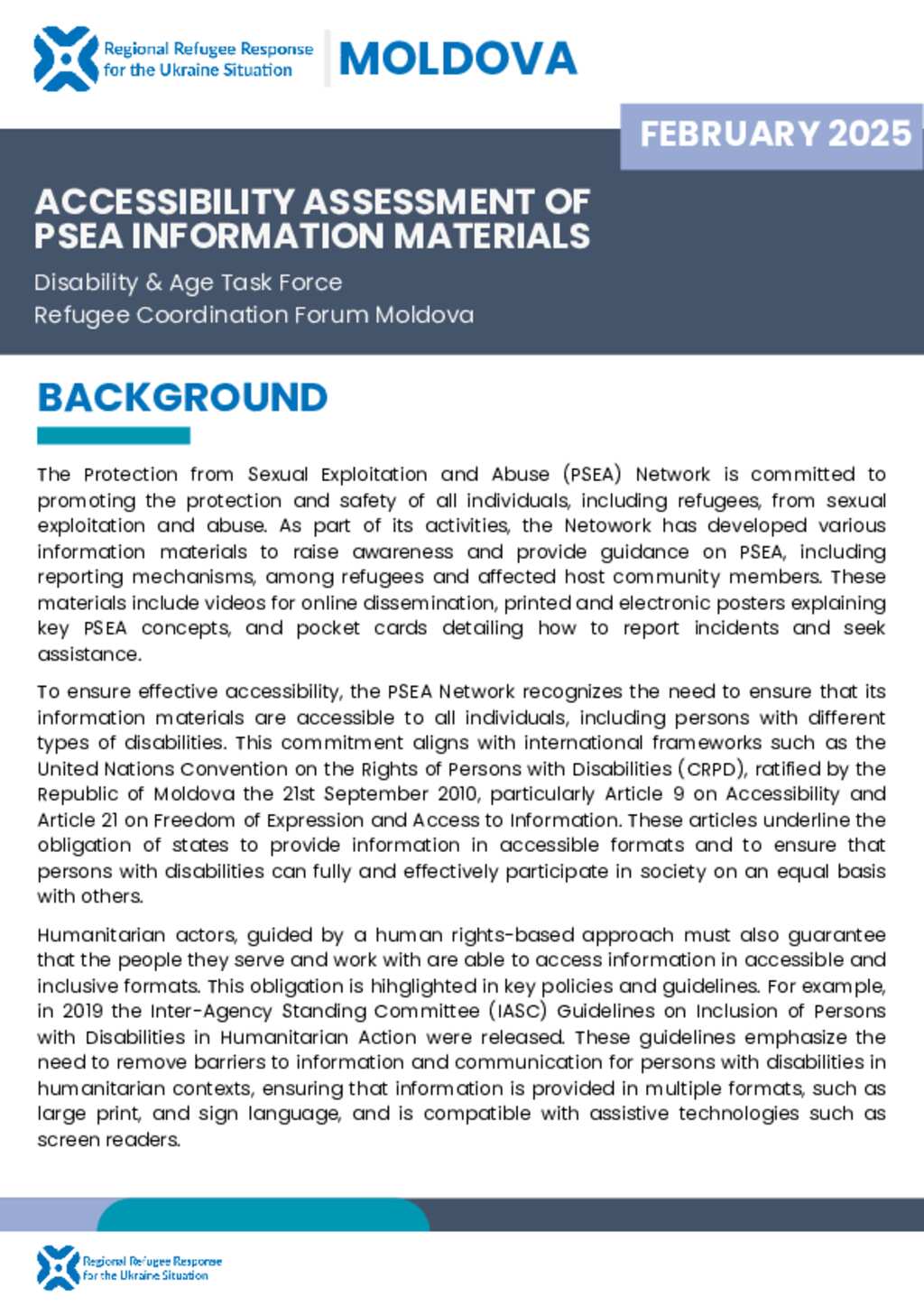 Ukraine Situation - Moldova: Disability Task Force - Accessibility Assesment of PSEA Information Materials (February 2025) EN