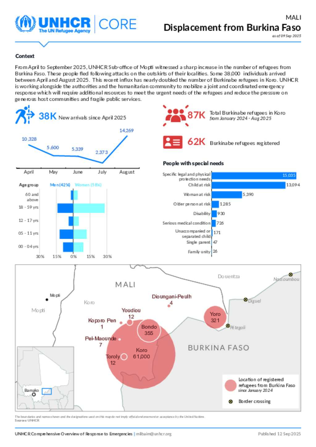 UNHCR Mali CORE: Displacement from Burkina Faso -Septembre 2025