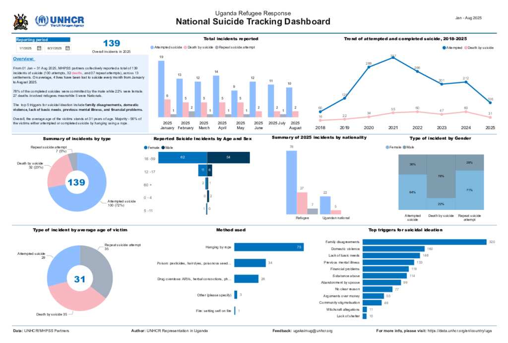 Uganda Refugee Response: Suicide Tracking Dashboard August 2025
