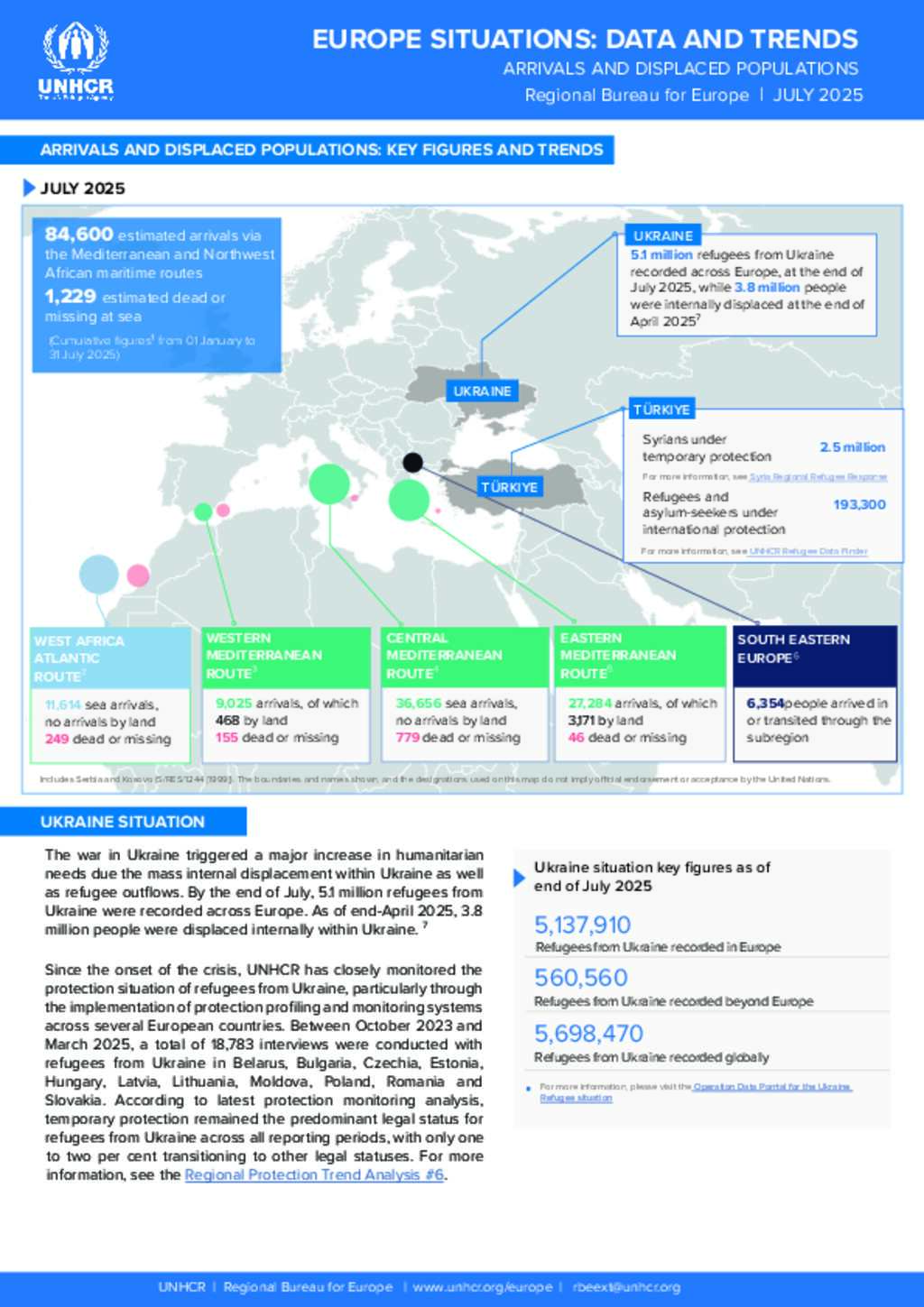 EUROPE SITUATIONS: DATA AND TRENDS - ARRIVALS AND DISPLACED POPULATIONS - JULY 2025