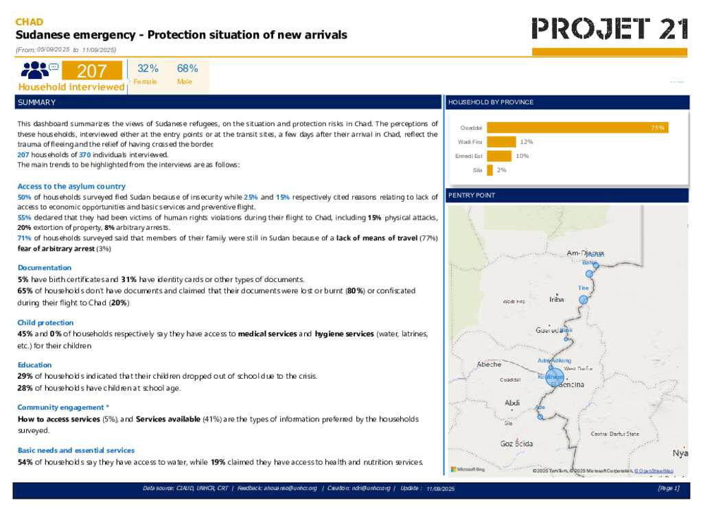 P21 - TCHAD| Dashboard Preliminary results Monitoring Sudan Emergency (05-11 september, 2025)(EN)