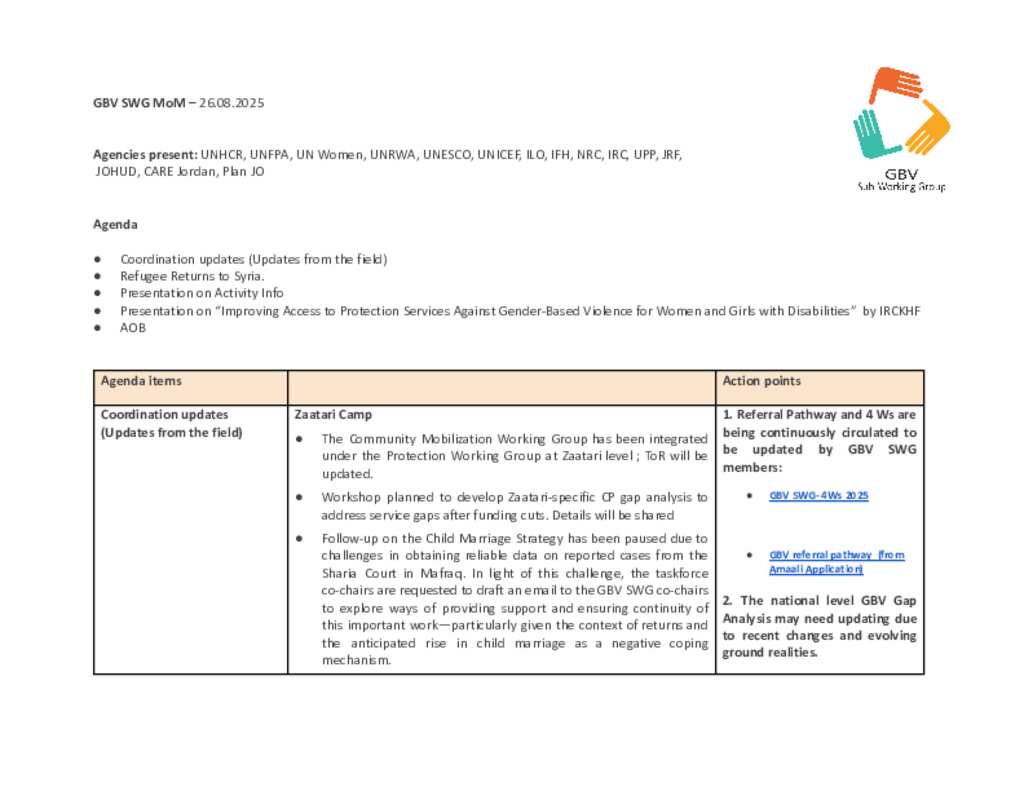 GBV SWG Jordan MoM AUG 2025