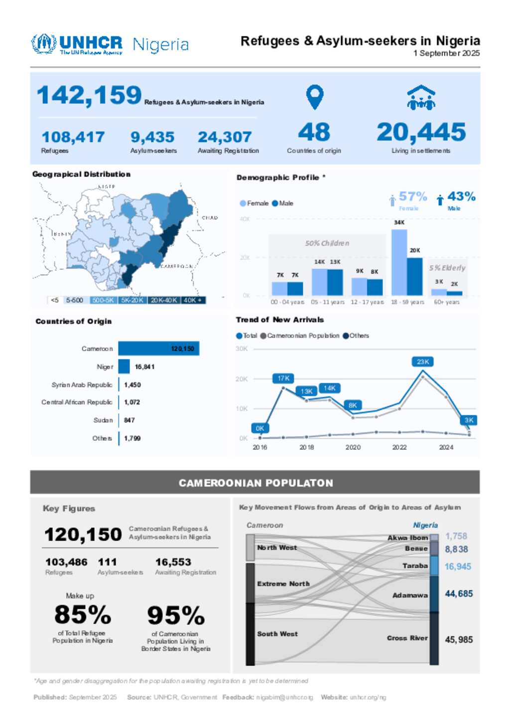 UNHCR Nigeria Refugees & Asylum-seekers Dashboard - 1 September 2025