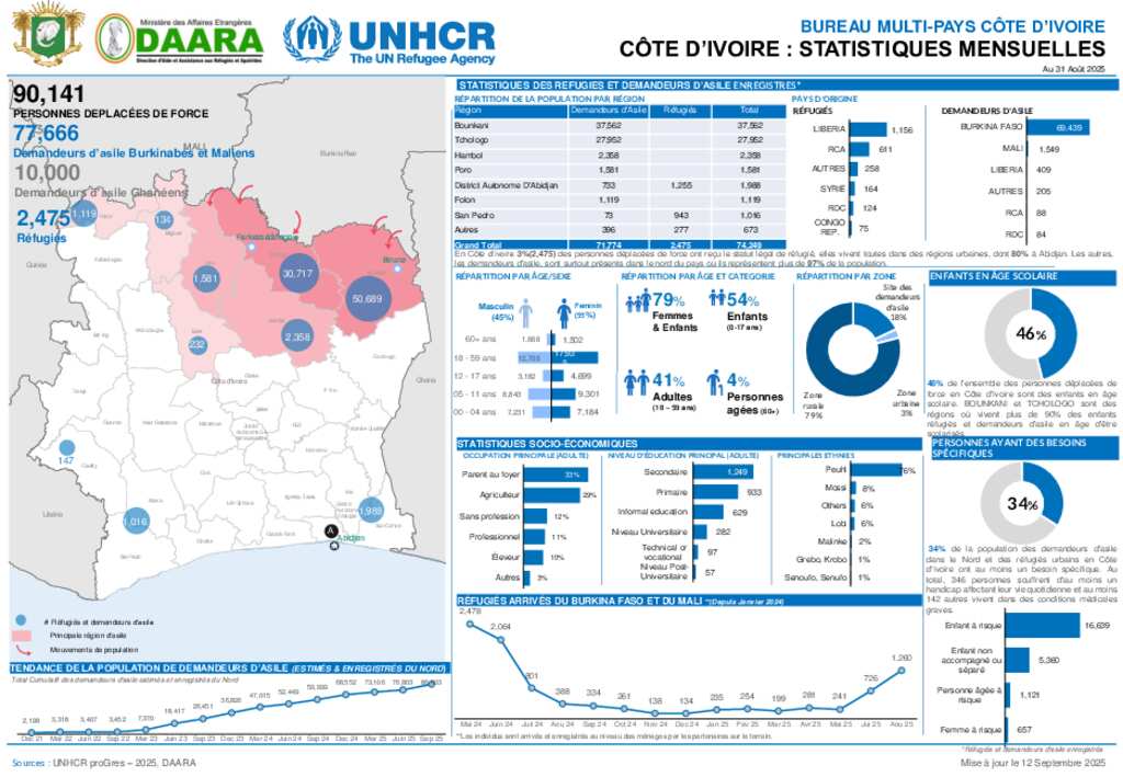 Monthly Statistics Dashboard Côte d'Ivoire as of 31 August 2025