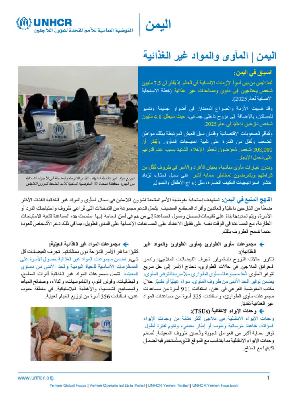 UNHCR Yemen - Shetler NFIs factsheet 2025 AR