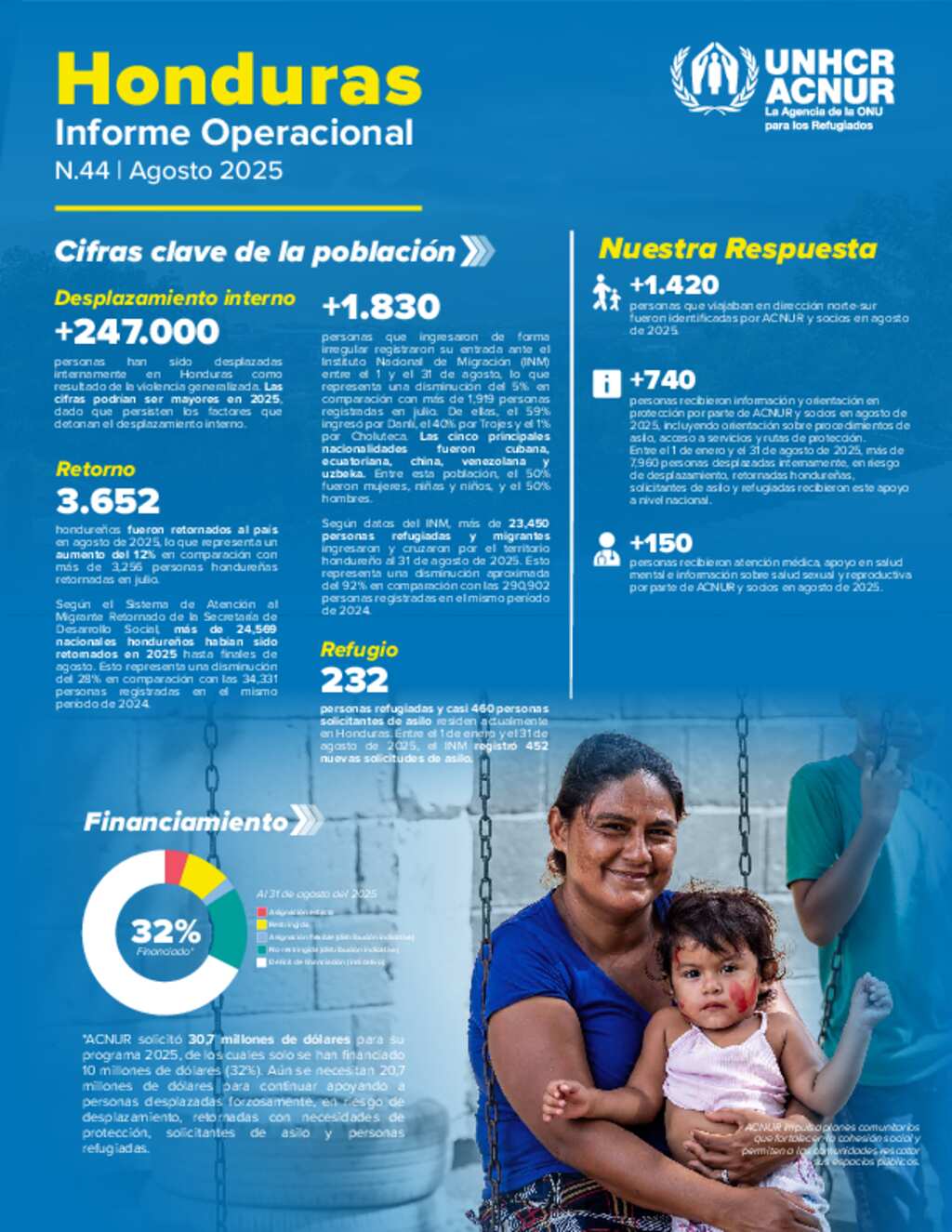 Reporte operacional de la oficina de ACNUR en Honduras que corresponde a agosto de 2025.