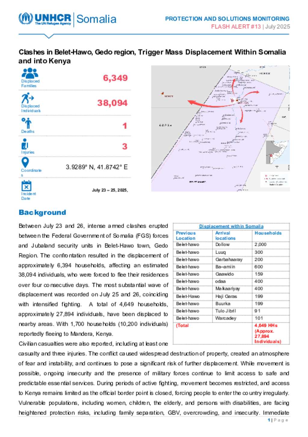 Flash Alert #13- Armed Clashes in Belet-Hawo Gedo Region Displaces Thousands
