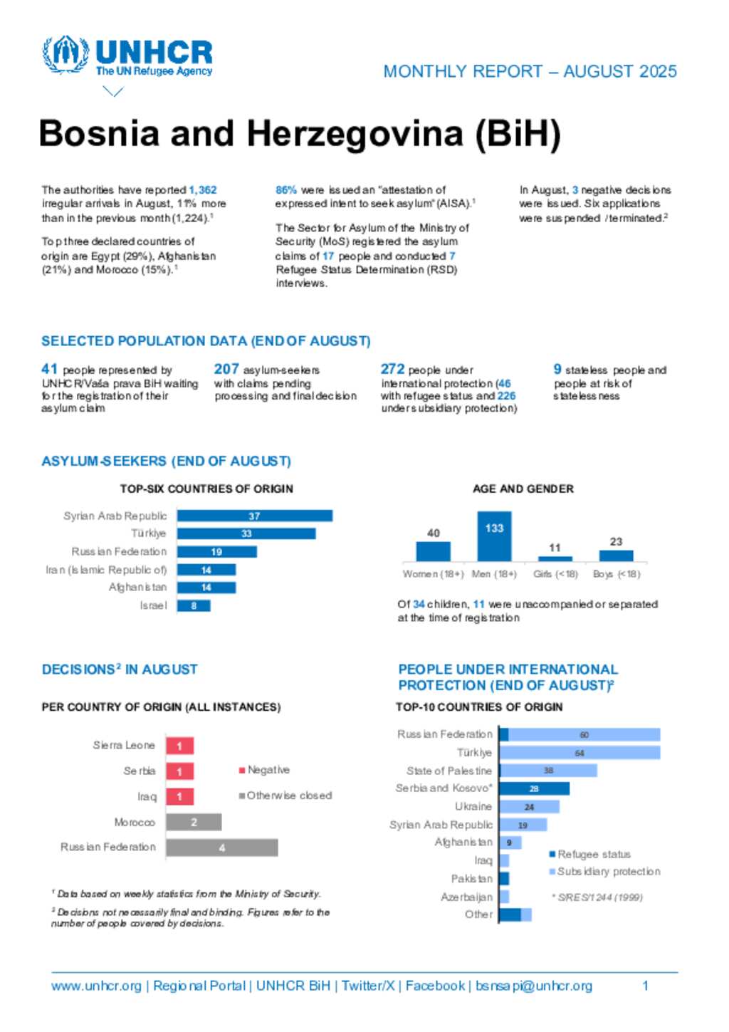 UNHCR Bosnia and Herzegovina monthly update - August 2025
