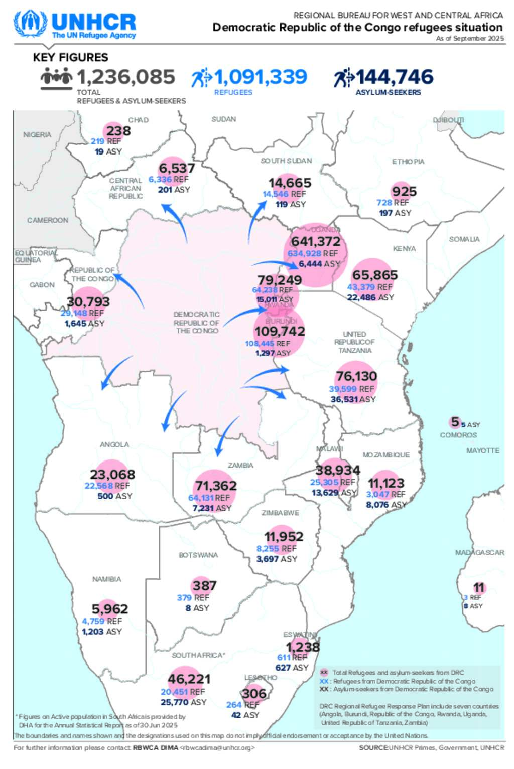 UNHCR RBWCA - Democratic Republic of the Congo refugees situation - September 2025