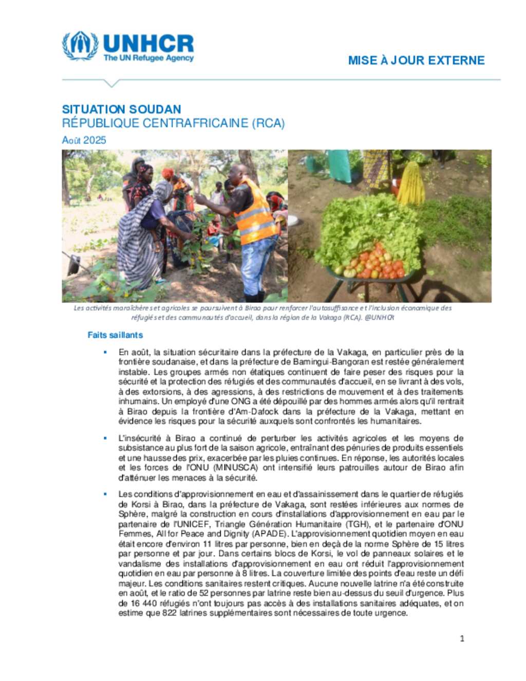 Situation Soudan - Mise à jour Externe - HCR RCA - Août 2025