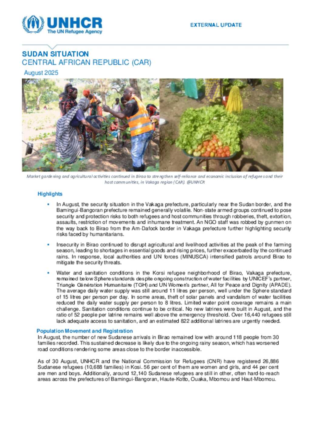 Sudan Situation: UNHCR CAR External Update: August 2025