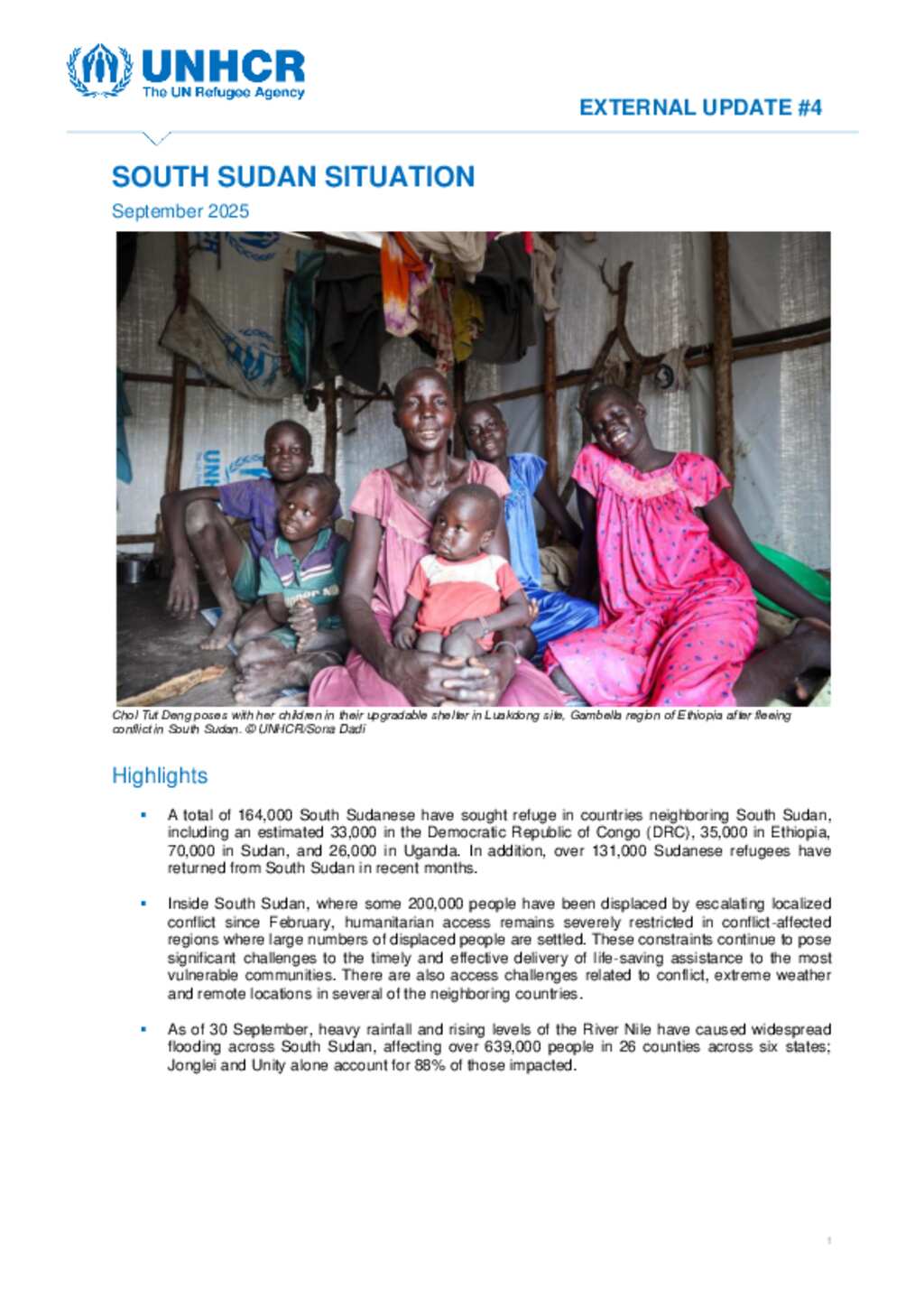 South Sudan Situation: UNHCR External Update #4 (September 2025)