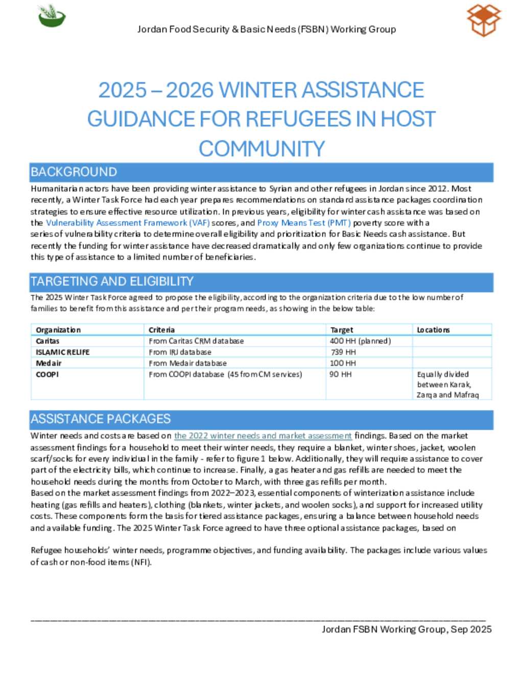 2025 – 2026 WINTER ASSISTANCE GUIDANCE FOR REFUGEES IN HOST COMMUNITY_ Final_ 2025.10.20