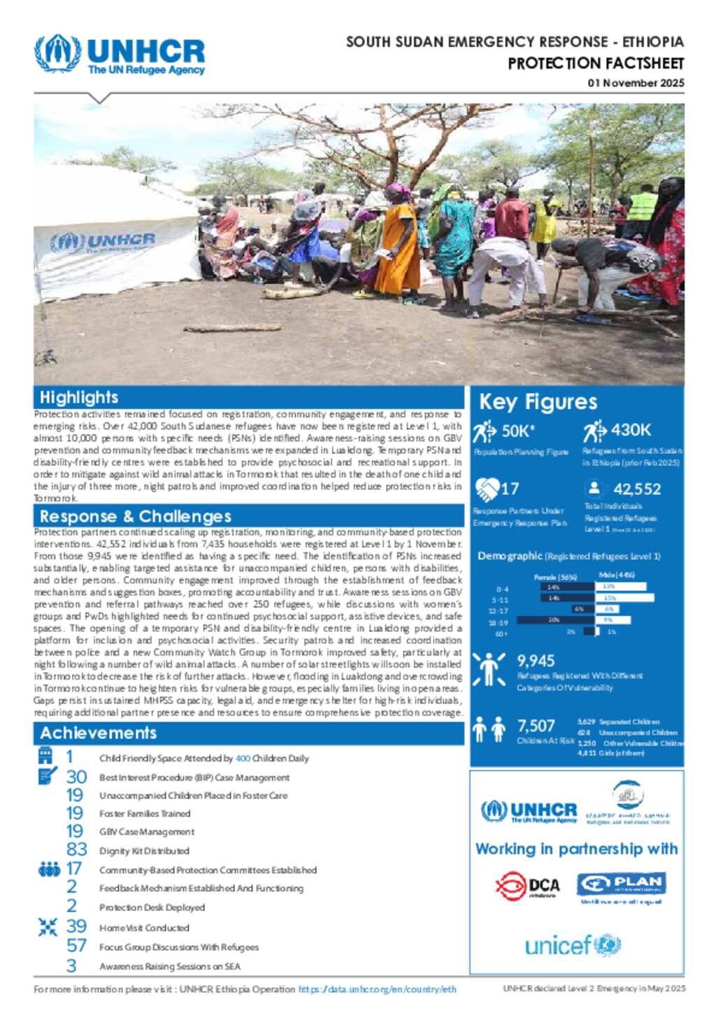 UNHCR Ethiopia Thematic Factsheet Protection as of 01 November 2025