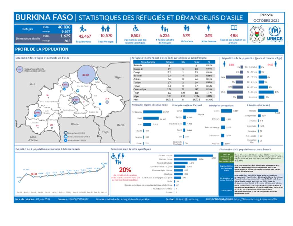 UNHCR BURKINA FASO - Rapport statisitiques des réfugiés et demandeurs d'asile au 31 octobre 2025