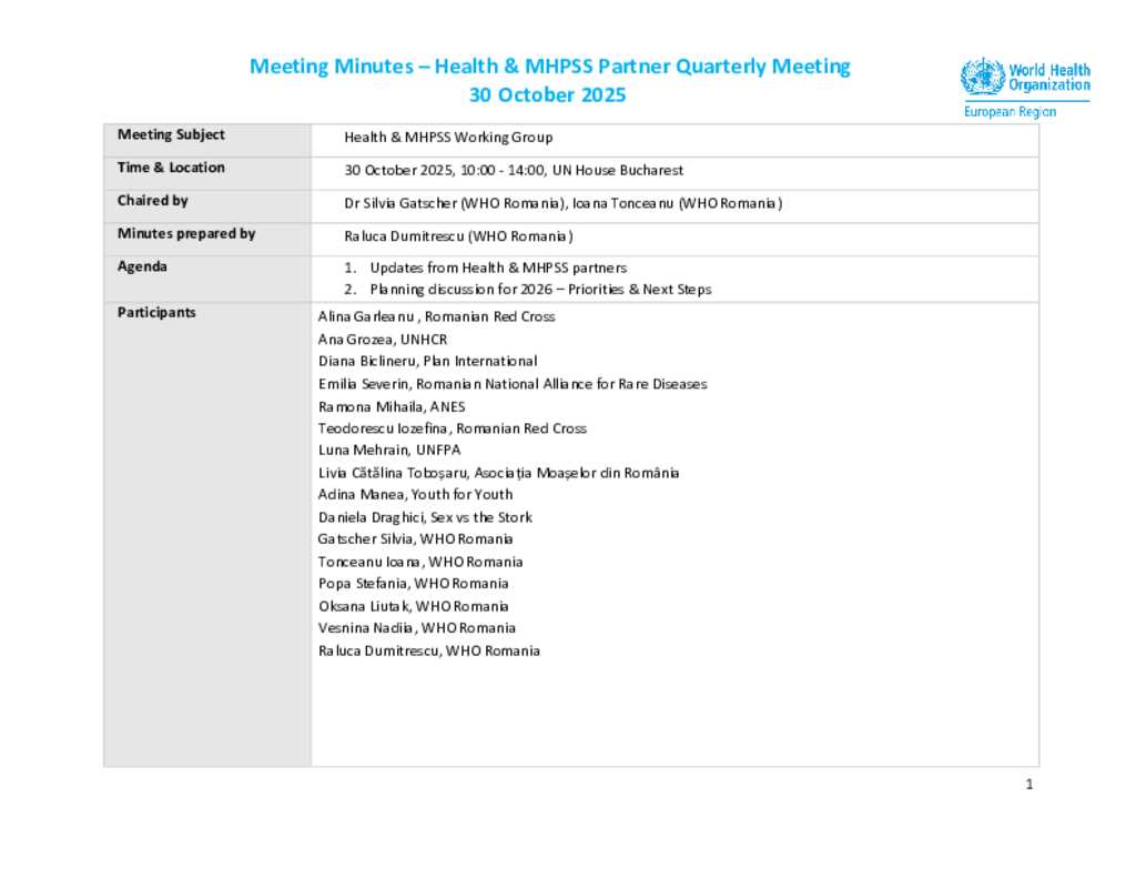 Health and SRH Working Group minutes - 30 October 2025